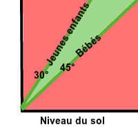 Le siège bébé doit être incliné à un angle de 45 degrés. Cela permet de protéger le corps du bébé de la pression sur le faible cou tenant la grosse tête, ou la faible la colonne vertébrale dans un accident. En outre, si la position est trop verticale, sa tête va tomber sur la poitrine et de restreindre sa respiration. Ne mettez jamais le siège auto sur un chariot ou sur le sol à moins qu’il maintienne cet angle.