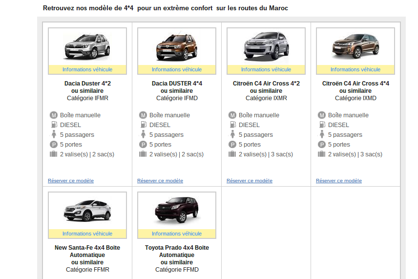 Profitez de votre voyage au Maroc exactement comme vous l’avez planifié. Avec Abid Cars, vous n’aurez jamais de voiture qui ne correspond pas à celle que vous avez réservée. Donc vous serez toujours sûrs d’obtenir la même voiture que vous avez choisie. Oubliez ce problème qui peut ruiner le voyage que vous attendiez avec impatience.