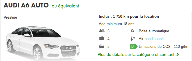 La plupart des sites des compagnies de location de voitures ne peuvent pas garantir une marque exacte ou le modèle de n’importe quel type de voiture. C’est pour cela ils utilisent la notion « ou similaire ». Les photos de voitures et les descriptions sur leurs sites ne sont que des exemples . Ils mettent différentes marques dans la même catégorie, mais sur le site, ils affichent la meilleure voiture de cette catégorie et ajoutent la mention “ou similaire” ou bien “ou équivalent”.
