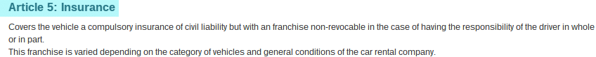 Most of car rental companies do not clearly explain the excess in their terms and conditions. They leave the information vague by only mentioning the existence of an excess, and do not declare the amount, or they precise that the excess amount is equal to a certain rate of the vehicle’s value, which is unclear since the client does not know for sure the real value of the car.